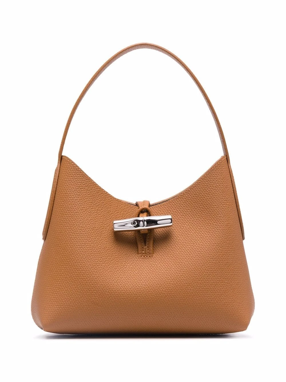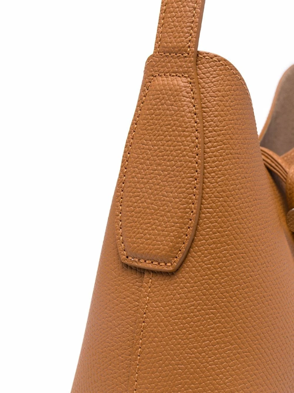 Texture grainée, fermoir tourniquet signature en bambou, finitions en métal argenté, bretelle portée épaule unique, ouverture sur le dessus, poche intérieure plaquée, plaque logo intérieure. Couleur : marron. Matière : cuir.