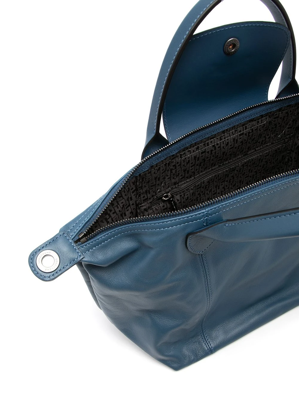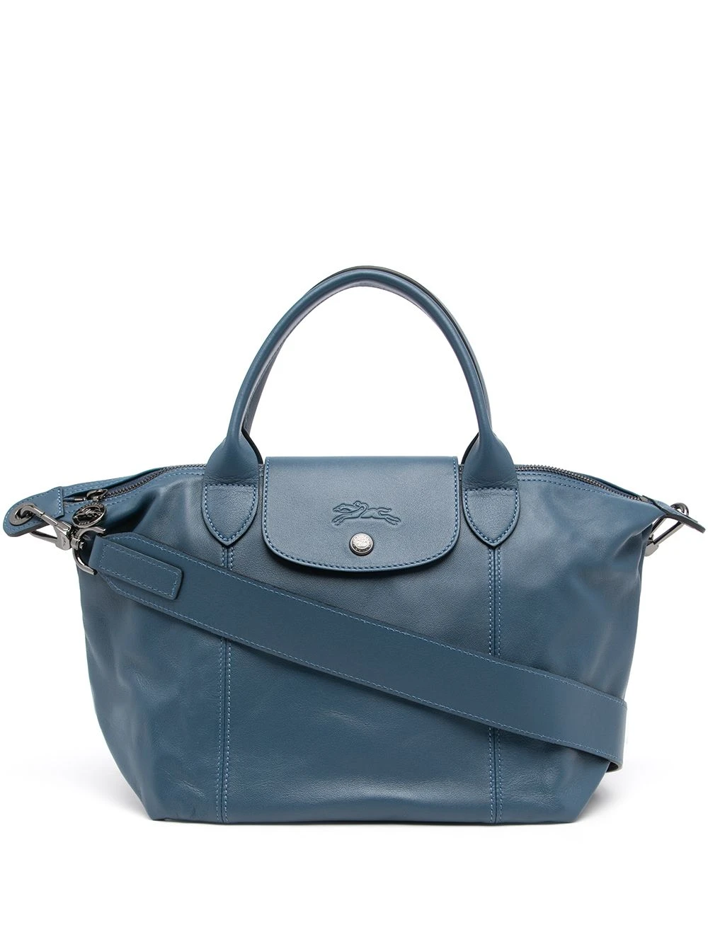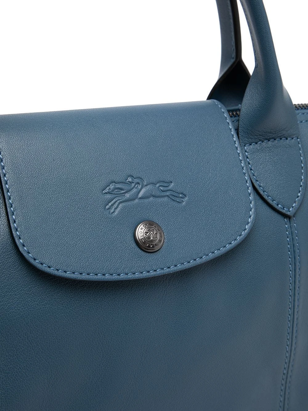 Texture grainée, coutures ton sur ton, logo lettre, logo embossé sur le devant, boutons argentés à détails embossés, fermeture à bouton pression, fermeture zippée sur le dessus, anses sur le dessus, bride porté épaule détachable, compartiment principal, poche intérieure zippée. Matière : cuir.