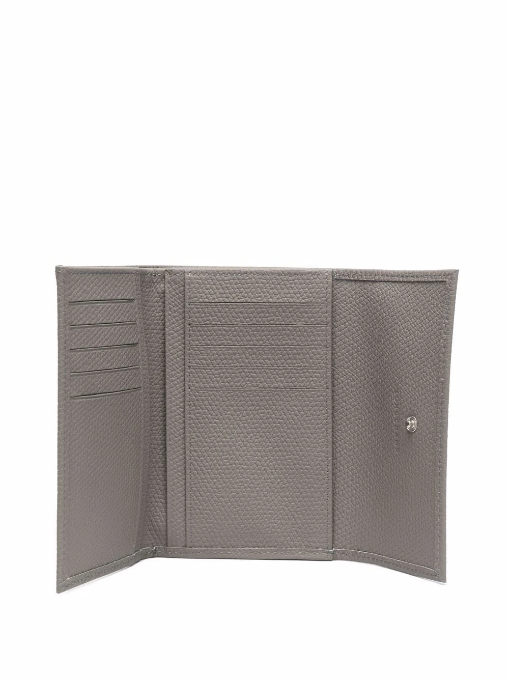 Forme rectangulaire, ornements argentés, dessus à rabat avec bouton pression, fentes pour carte. Matière : cuir.
