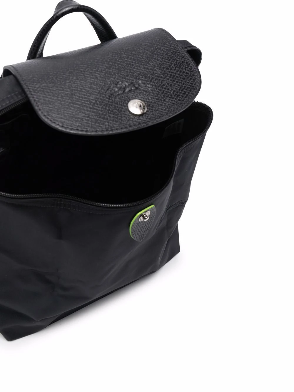 Logo embossé sur le devant, rabat sur le dessus, anse arrondie, brides porté épaule ajustables. Couleur : noir.