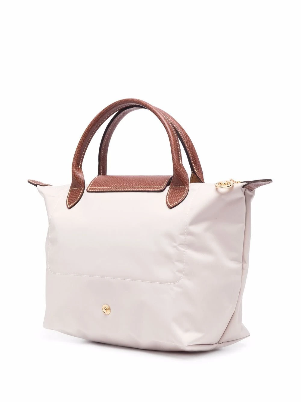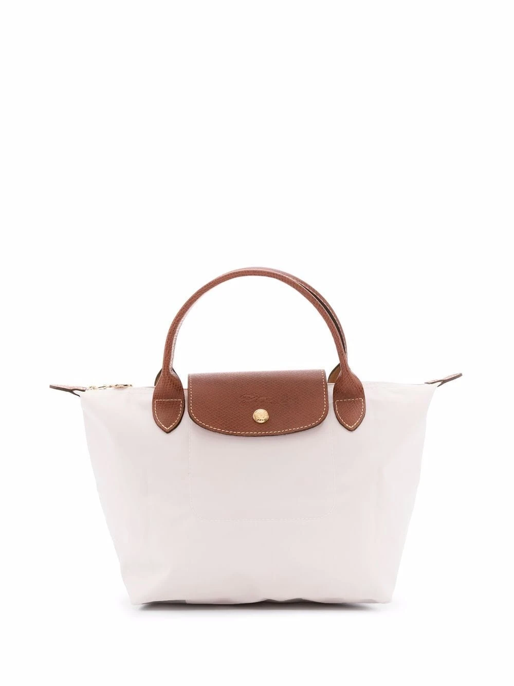 Design à empiècements, finitions en métal doré, anses arrondies, fermeture zippée sur le dessus, compartiment principal. Matière : cuir.