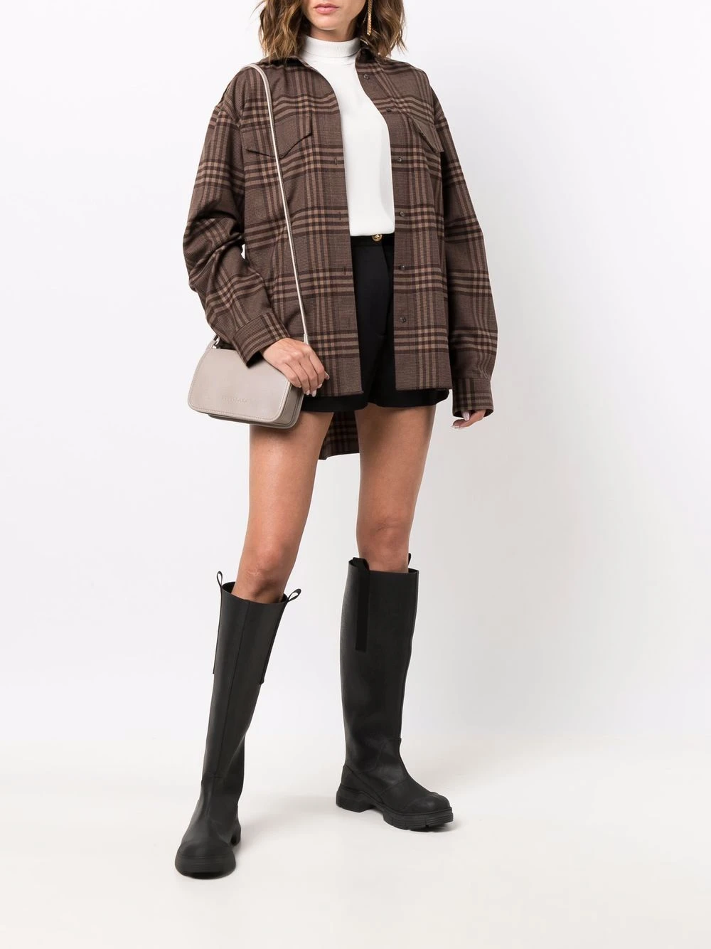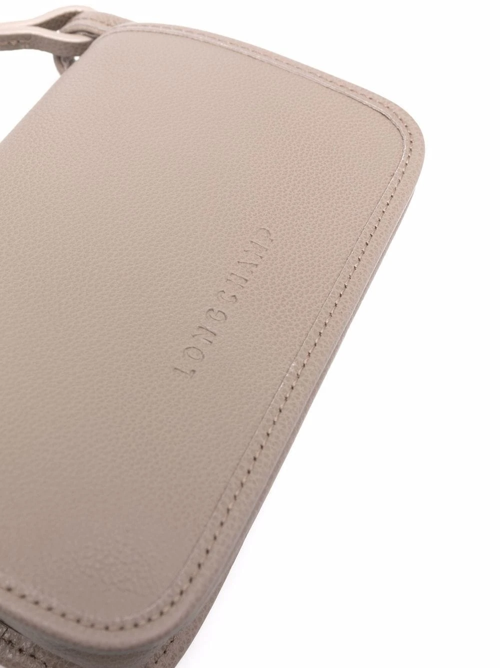 Texture grainée, logo embossé sur le devant, rabat sur le dessus, bretelle portée épaule unique. Matière : cuir.