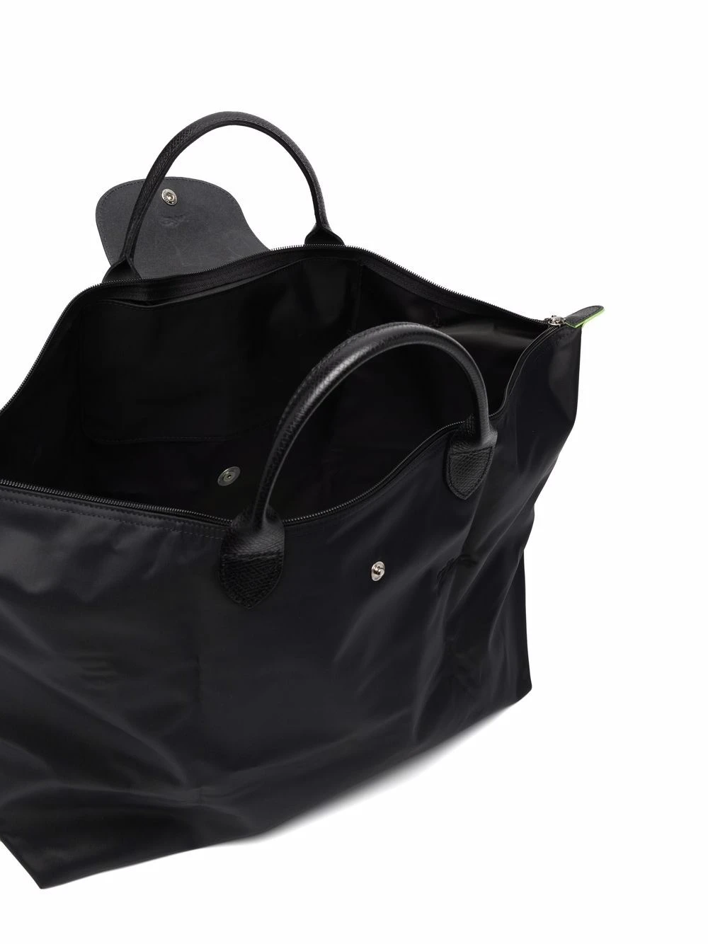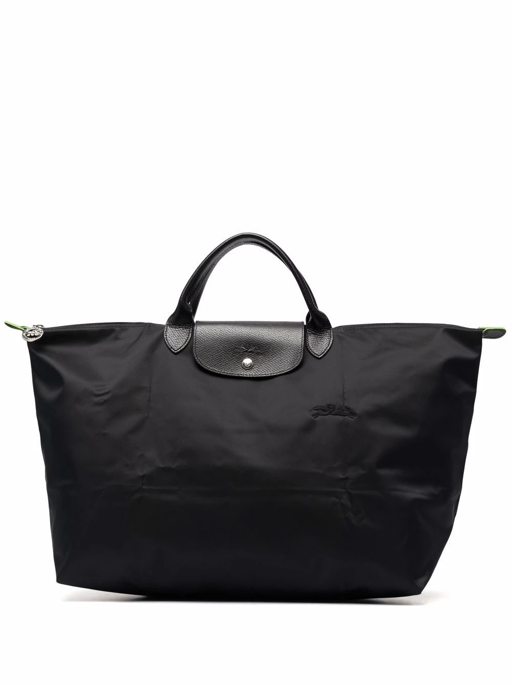 Design pliable, anses sur le dessus, rabat sur le dessus, fermeture zippée sur le dessus, breloque à logo.