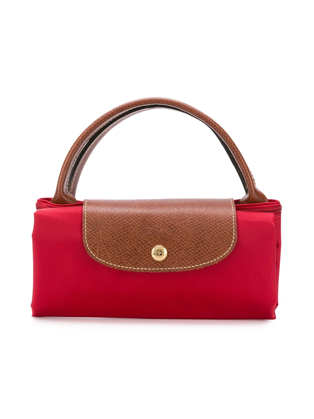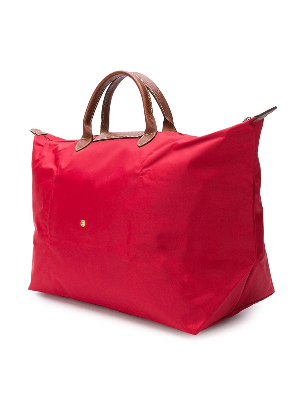 Sac cabas Le Pliage Longchamp avec anses arrondies, rabat replié sur le dessus et loquet, fermeture zippée sur le dessus et finitions dorées. Couleur : rouge.