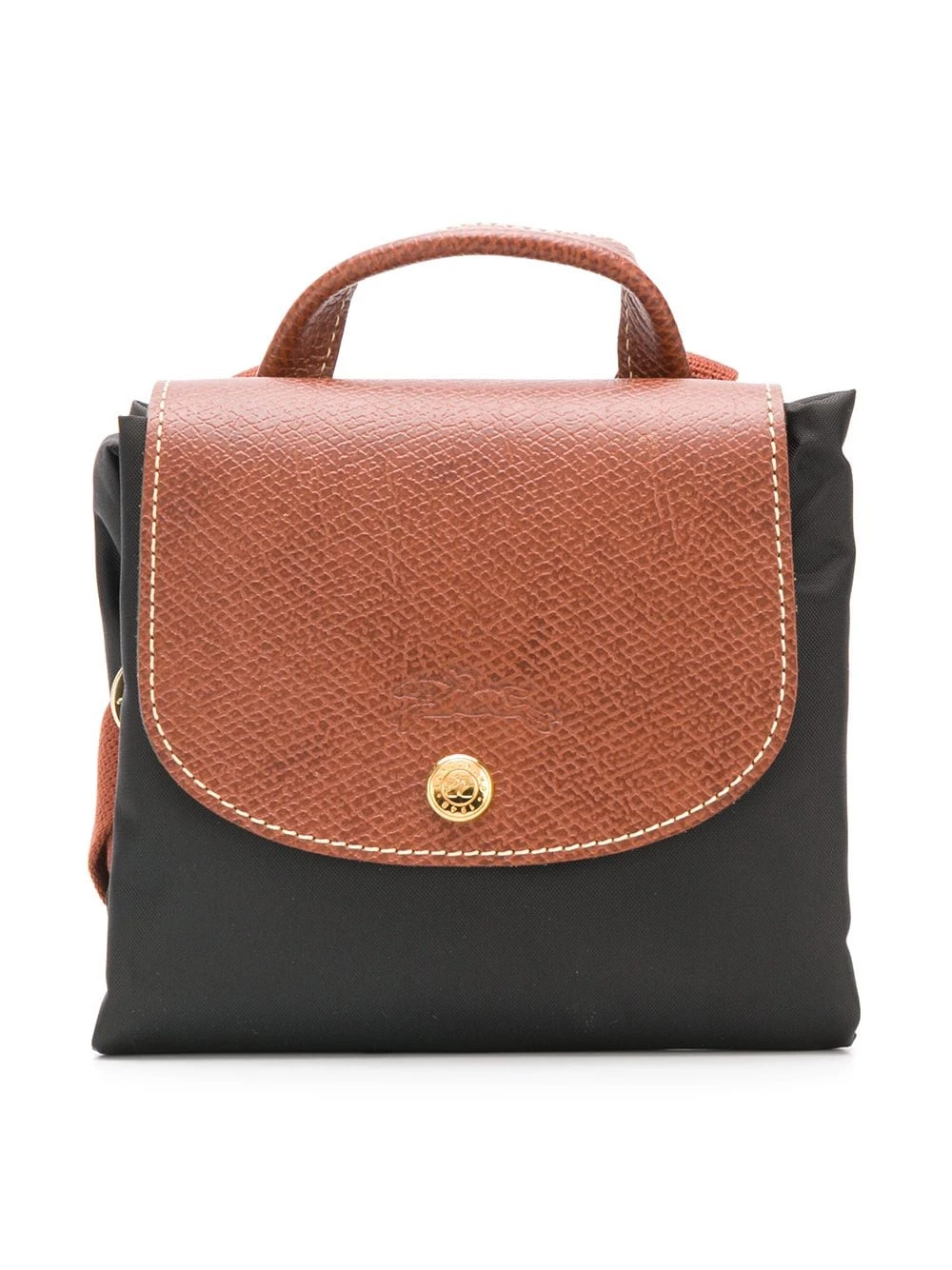Sac à dos Le Pliage Longchamp avec anse sur le dessus, rabat replié sur le dessus et loquet et fines bretelles ajustables.