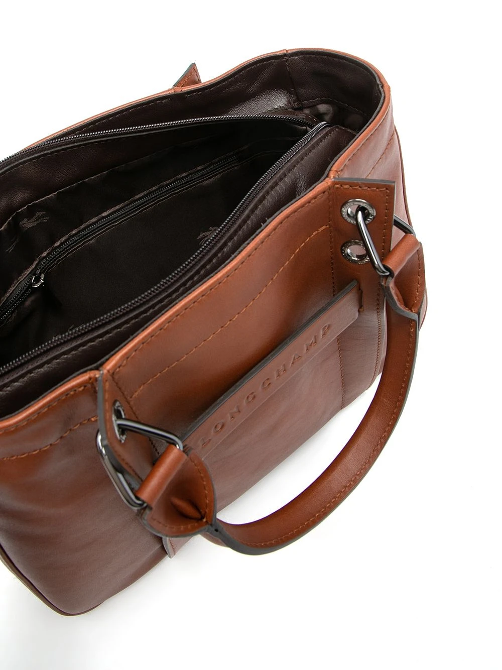 Logo lettre, coutures ton sur ton, fermeture zippée dissimulée, ornements argentés, anses sur le dessus, bride porté épaule détachable et ajustable, compartiment principal, poches intérieures zippées. Matière : cuir.