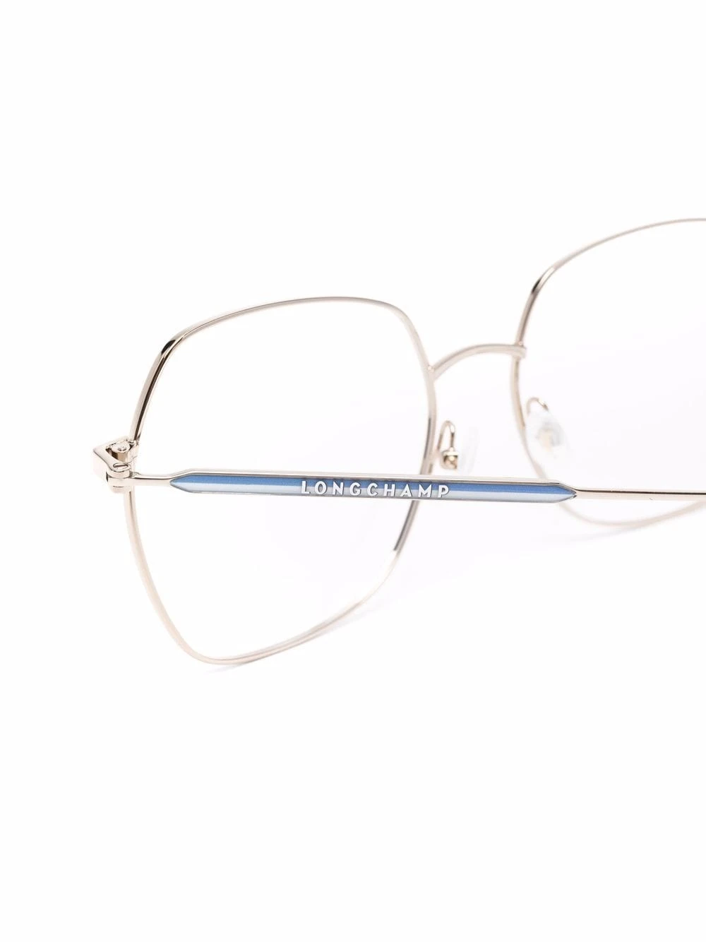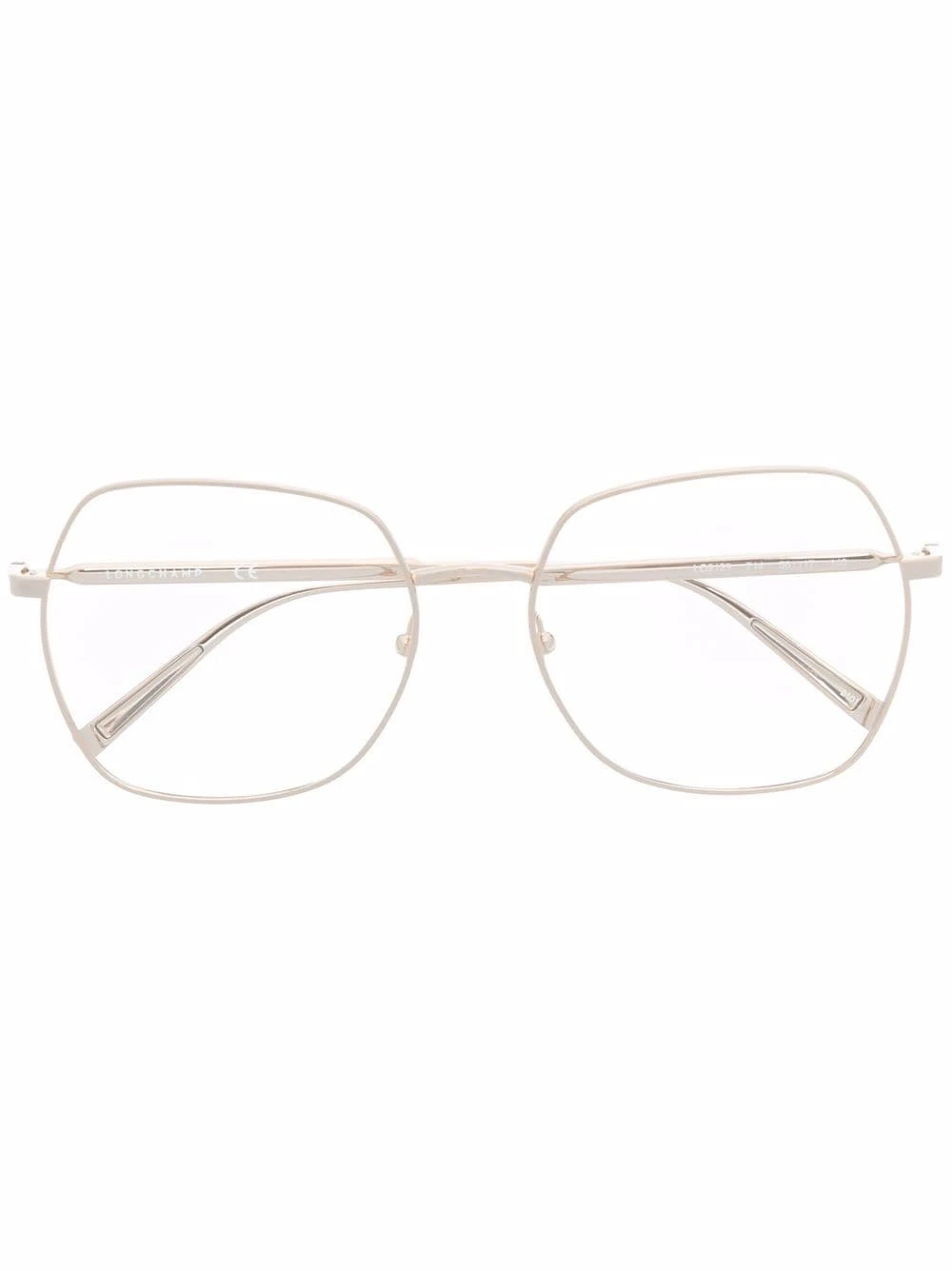 Verres transparents, monture oversize, pont haut, logo gravé sur la branche, branches droites, extrémités incurvées. Couleur : argent. Ces lunettes sont livrées avec un étui de protection.