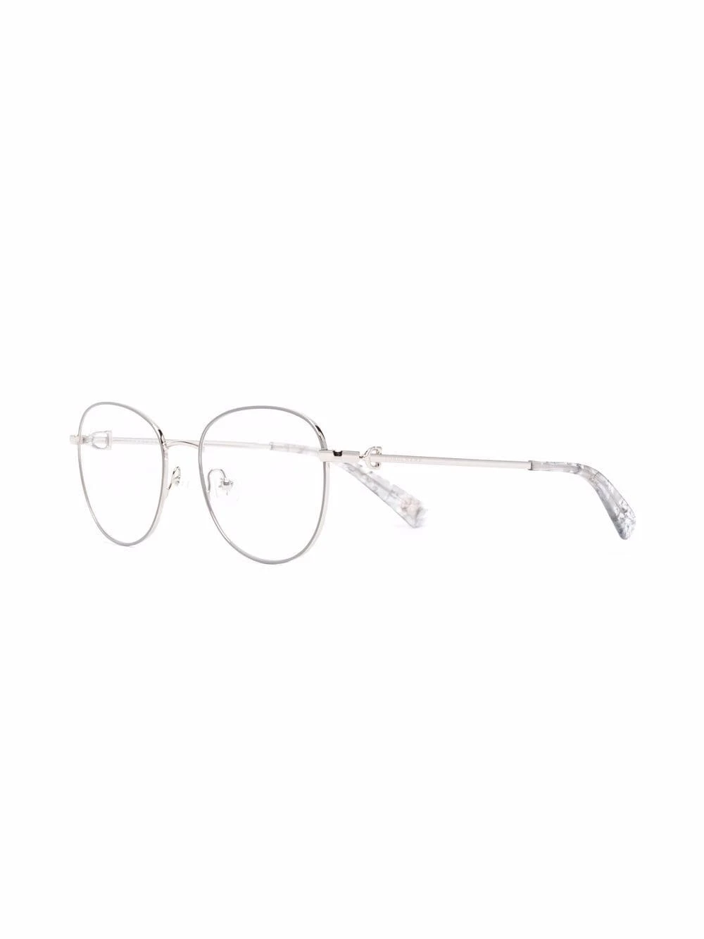 Effet poli, verres transparents, monture ronde, branches droites, extrémités incurvées. Ces lunettes sont livrées avec un étui de protection.
