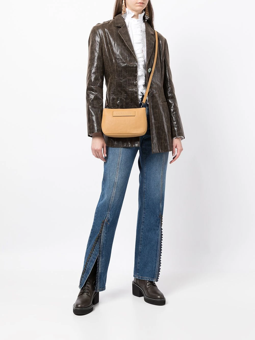 Bride porté épaule détachable et ajustable, logo embossé sur le devant, fermeture zippée sur le dessus, compartiment principal. Matière : cuir.