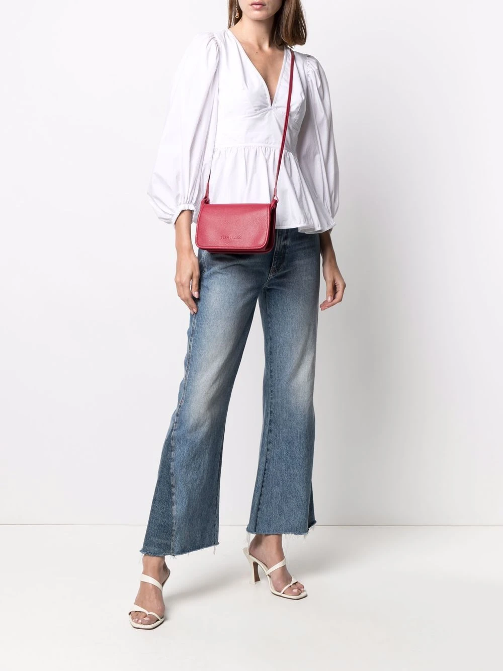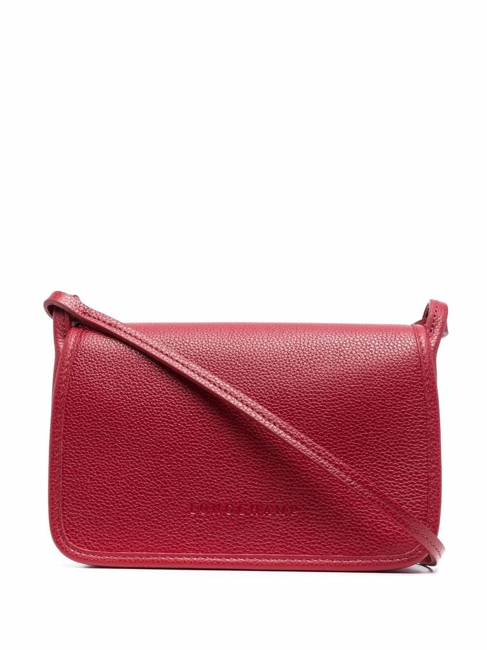 Texture grainée, logo embossé sur le devant, rabat sur le dessus, bretelle portée épaule unique. Matière : cuir.