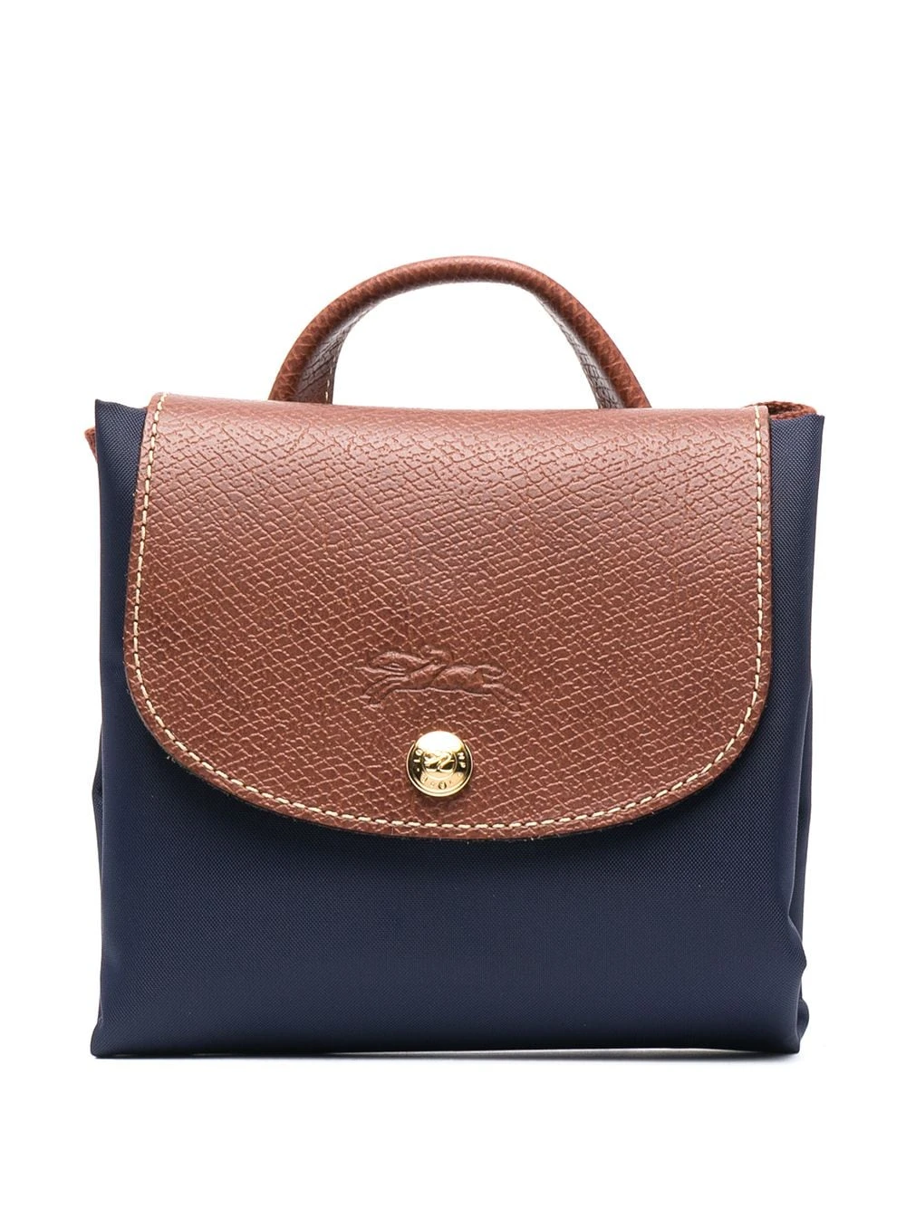 Liseré en cuir, anse classique, brides portées épaules ajustables, compartiment principal, fermeture zippée sur le dessus, dessus à rabat avec bouton pression.