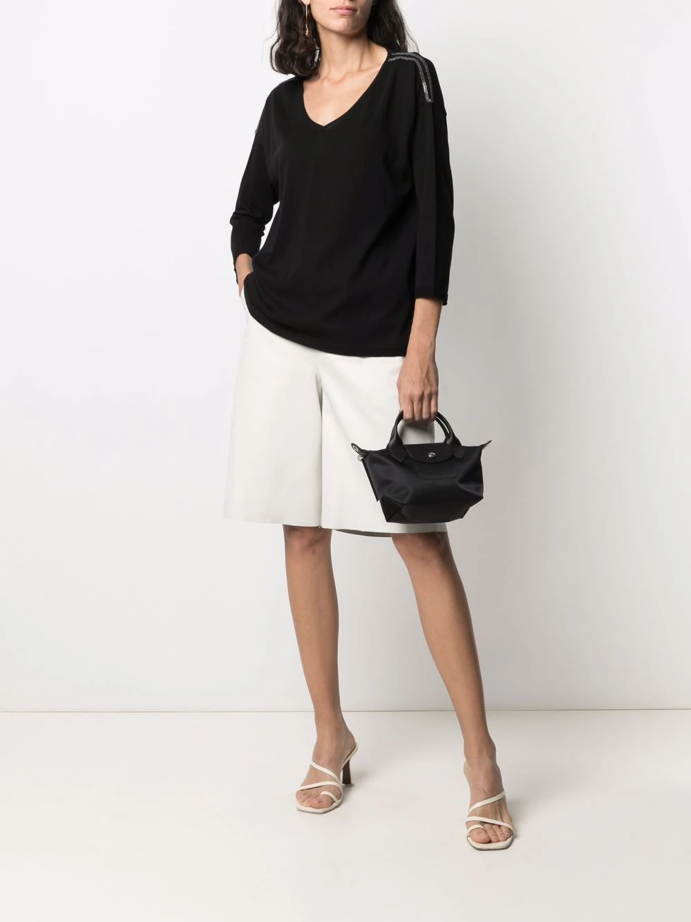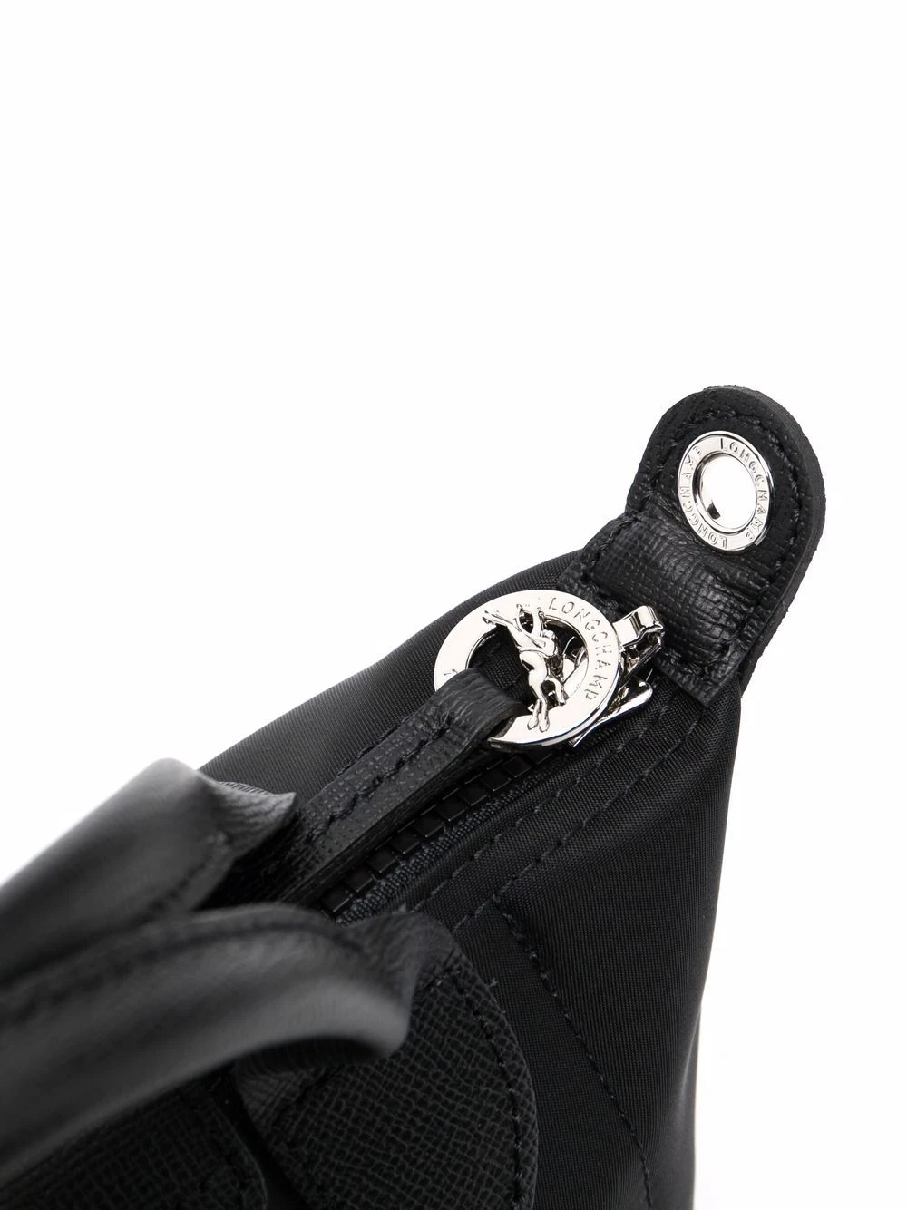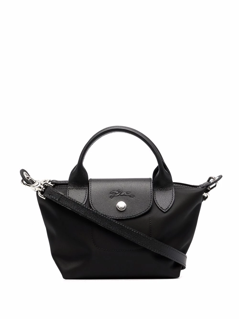 Texture grainée, logo embossé, boutons à logo embossé, dessus à rabat avec bouton pression, anses arrondies, fermeture zippée sur le dessus, compartiment principal, bride porté épaule détachable et ajustable. Couleur : noir.