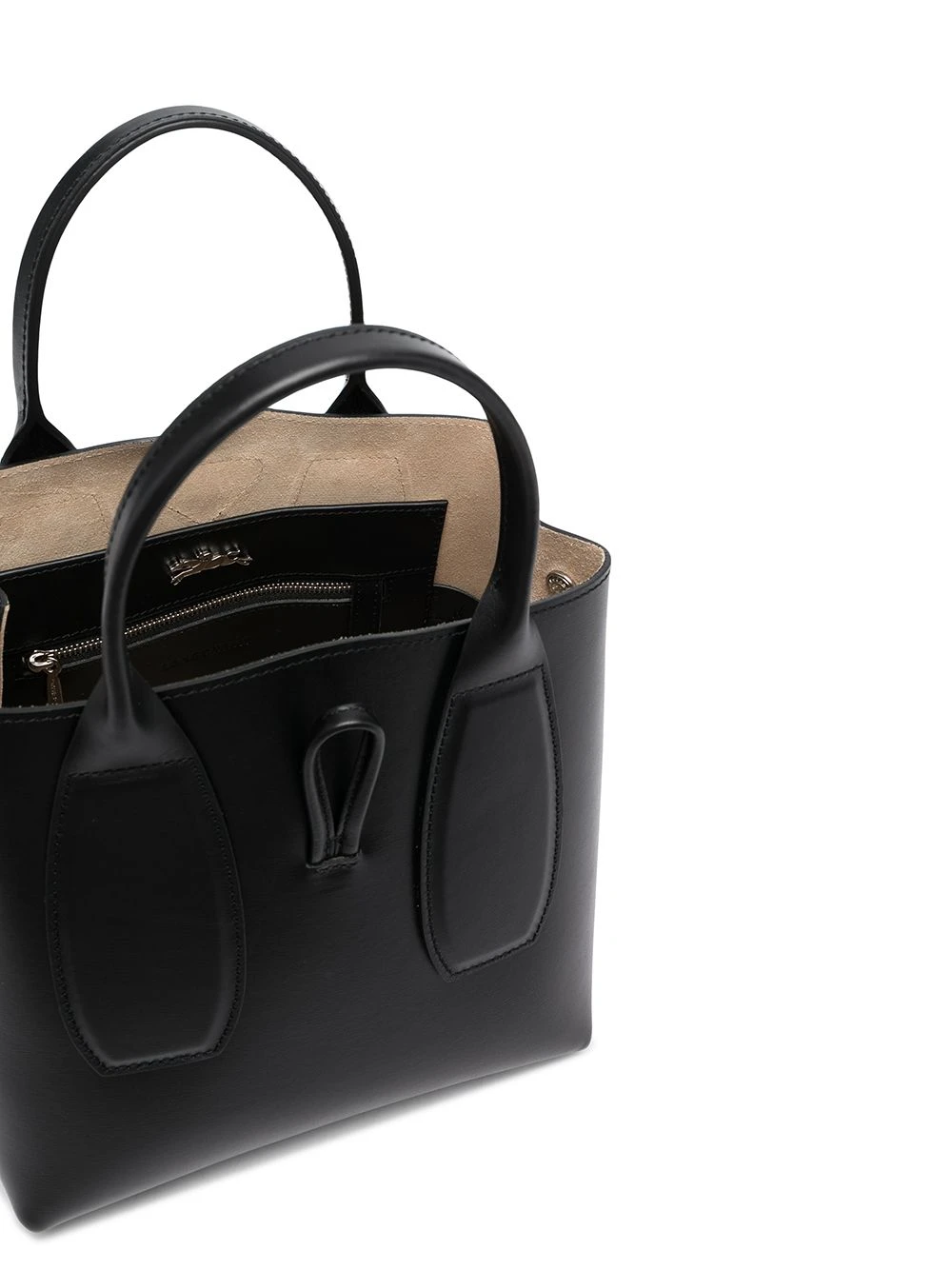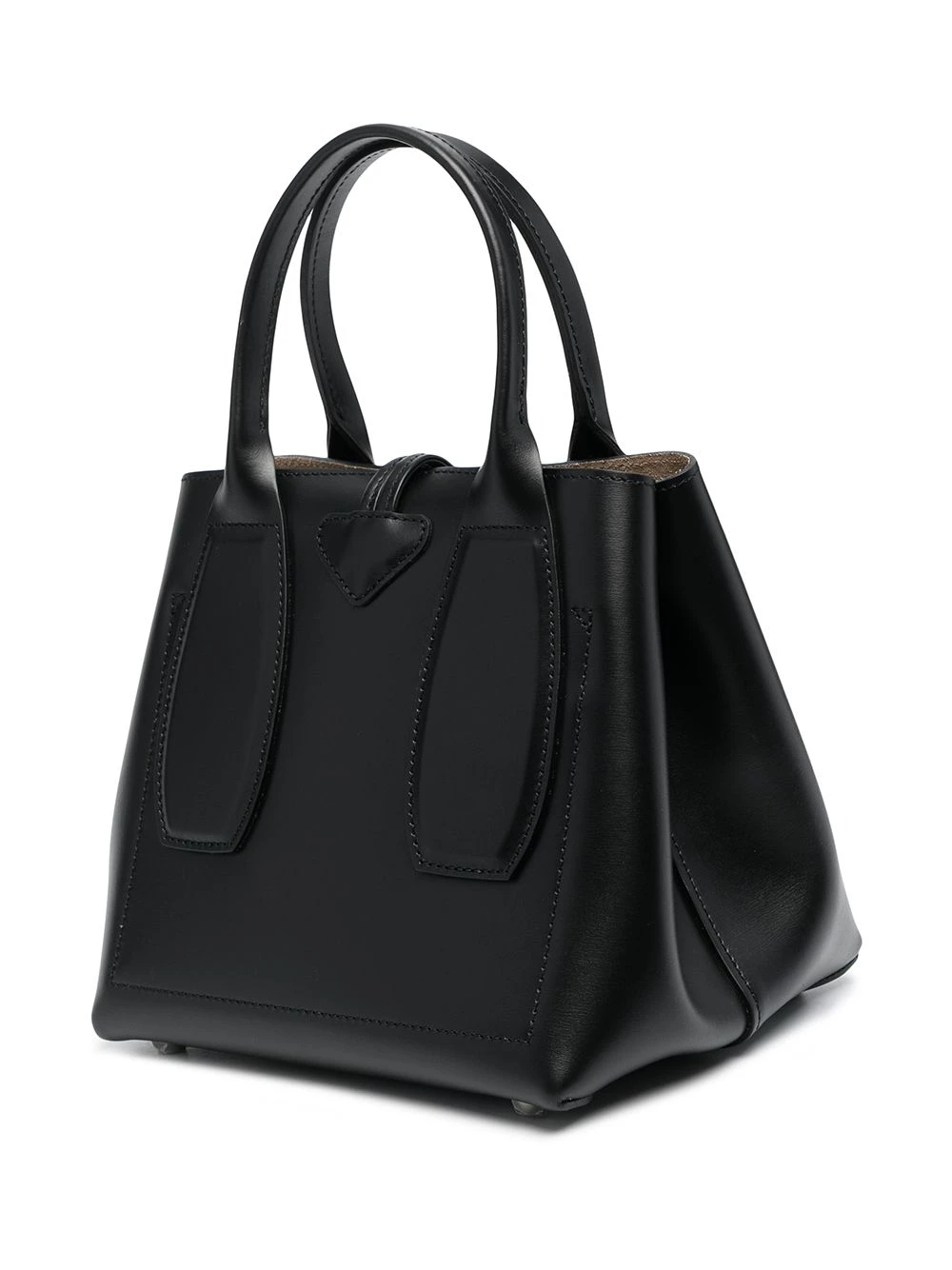 Fermeture à agrafes sur le devant, anses arrondies, compartiment principal, poche intérieure zippée, doublure en daim.