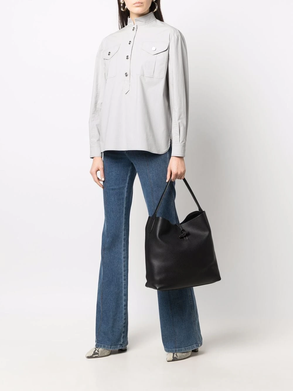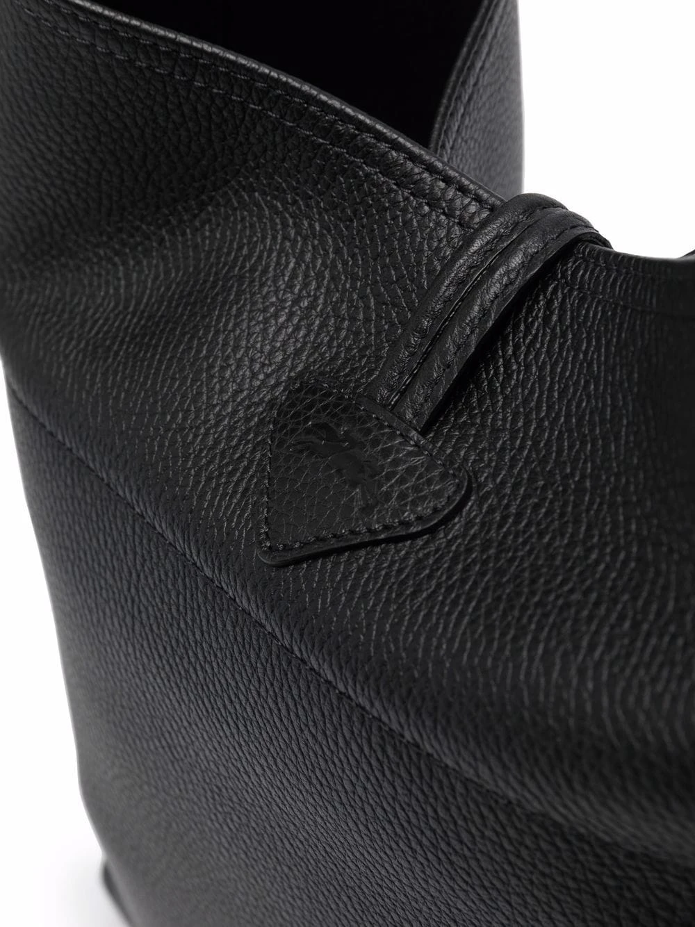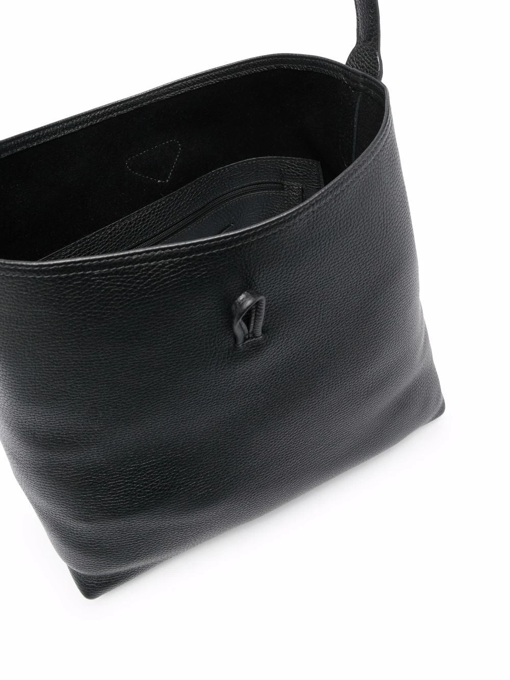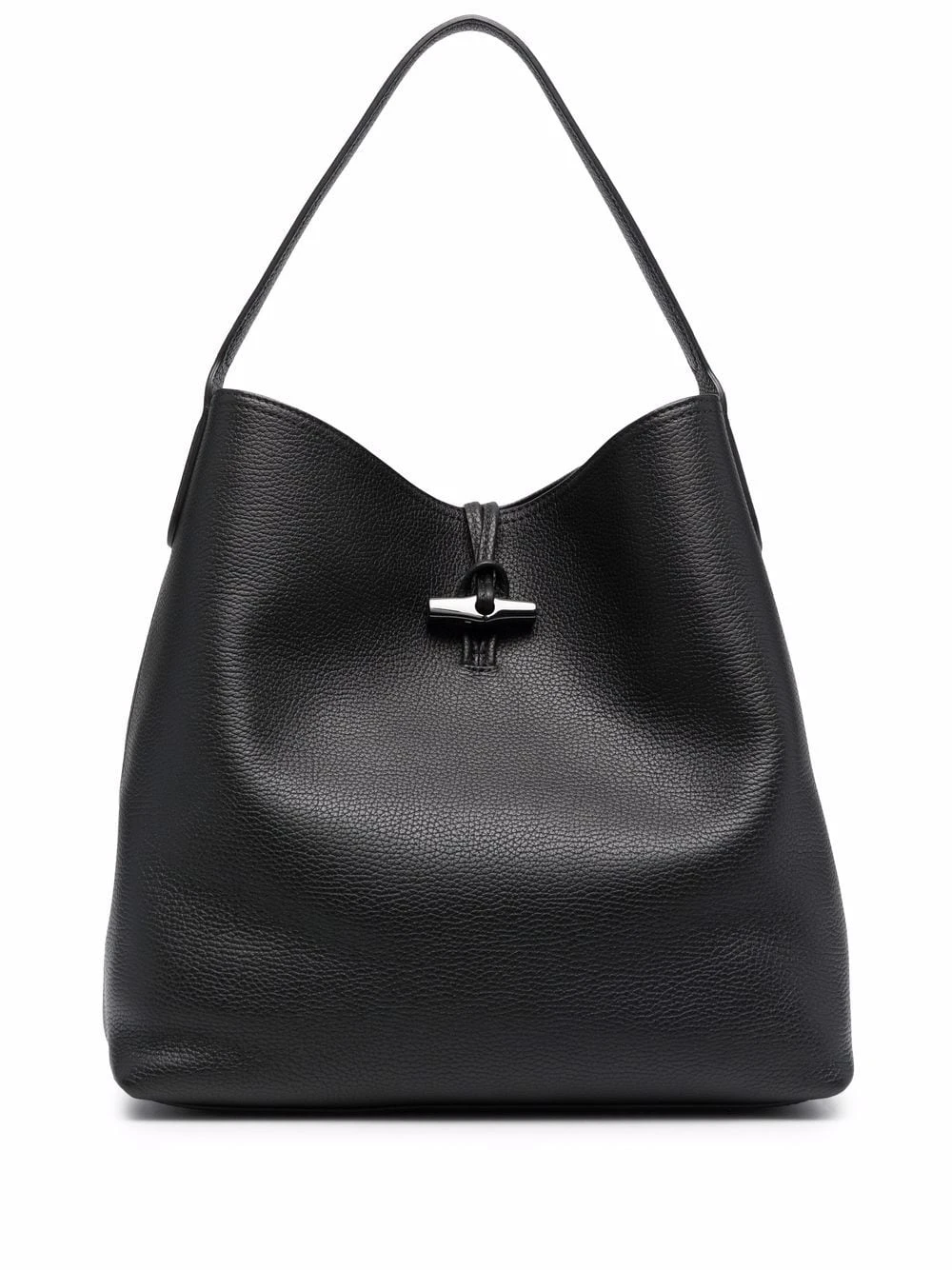 Design souple, anse arrondie, fermeture duffle-coat sur le devant. Couleur : noir. Matière : cuir.
