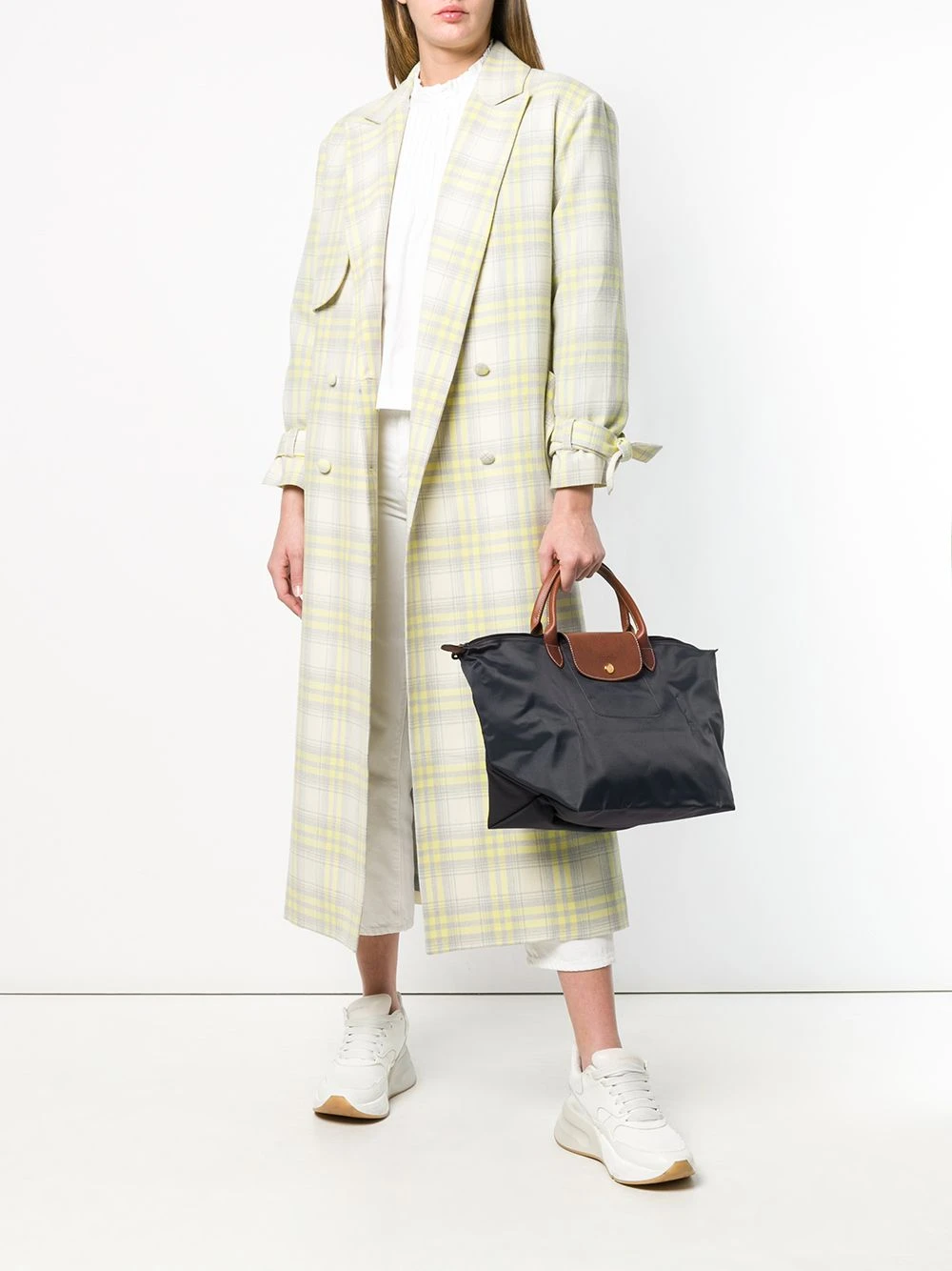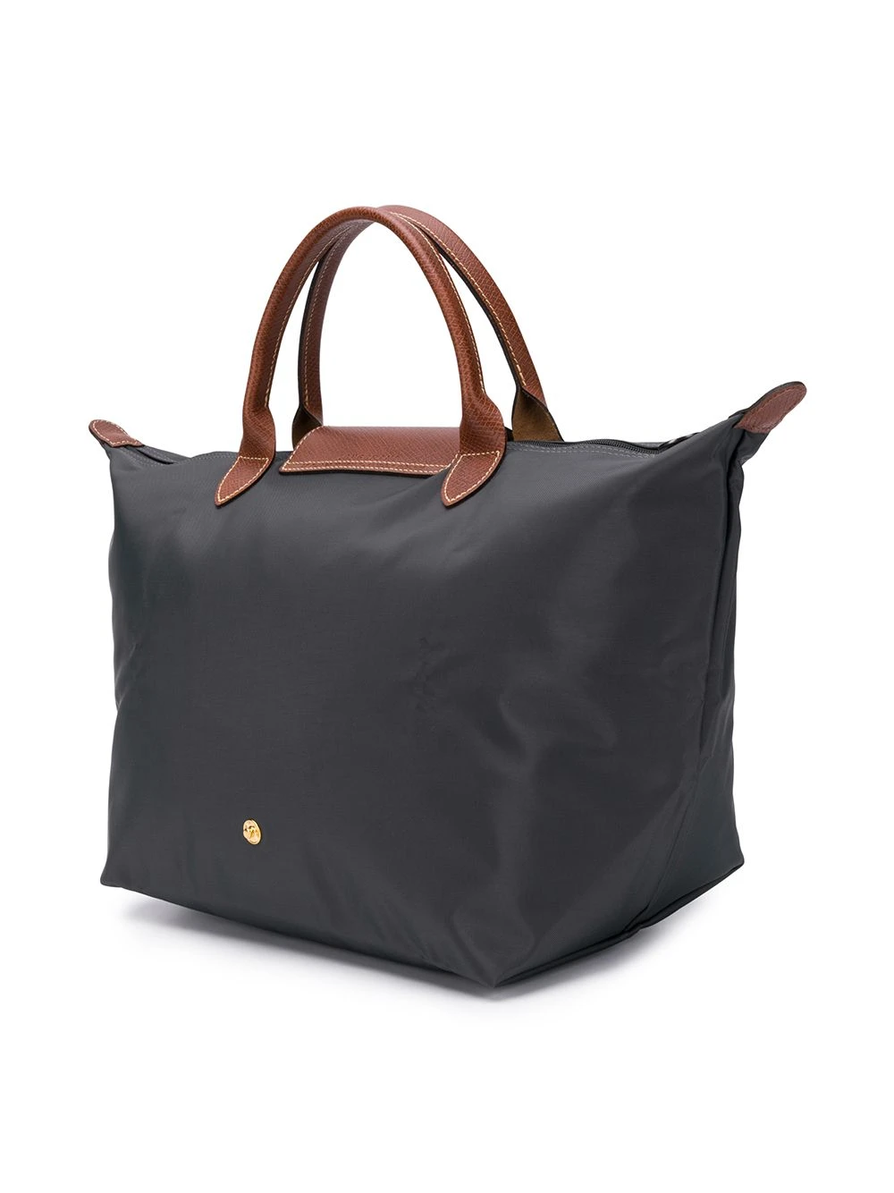 Sac cabas Le Pliage Longchamp avec anses arrondies, rabat replié sur le dessus et loquet, fermeture zippée sur le dessus et finitions argentées. Couleur : gris.