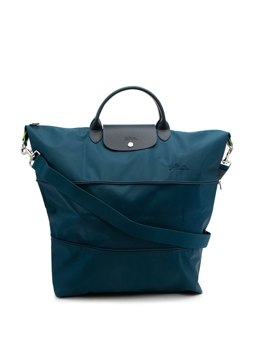 Design pliable, logo embossé sur le devant, compartiment principal, fermeture zippée sur le dessus, dessus à rabat avec bouton pression, anses sur le dessus, bride porté épaule détachable.