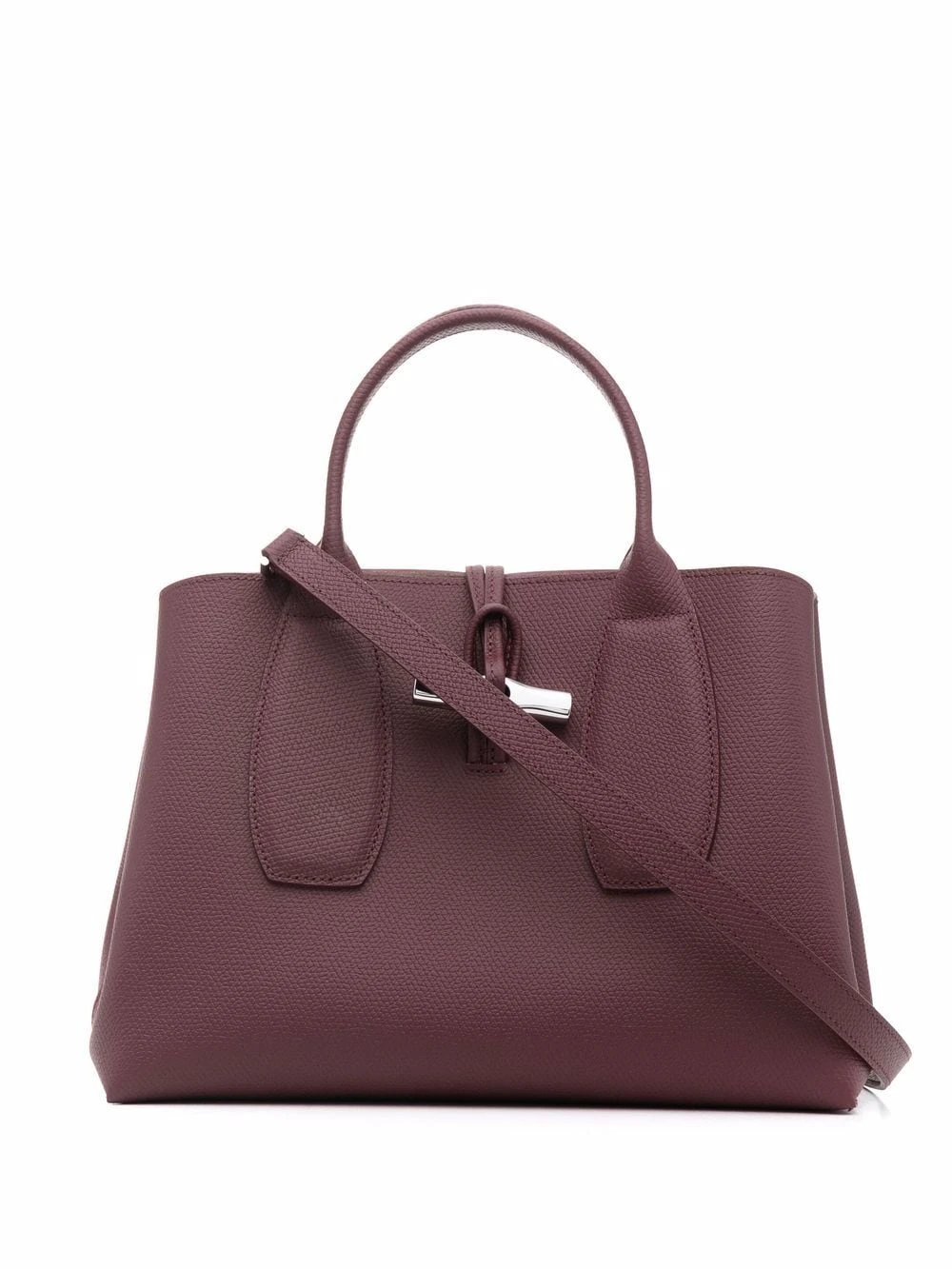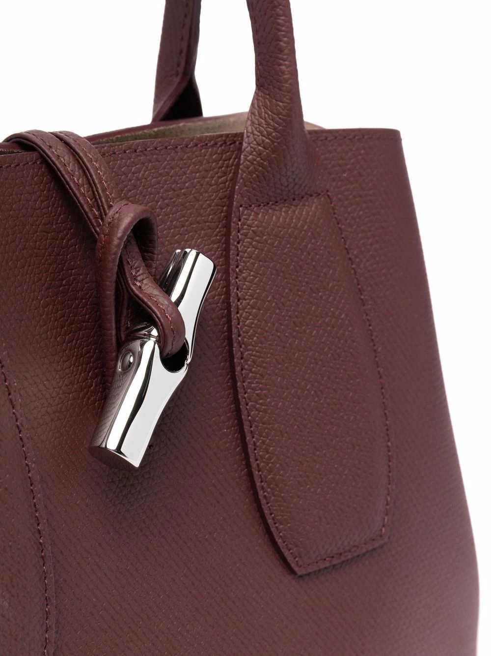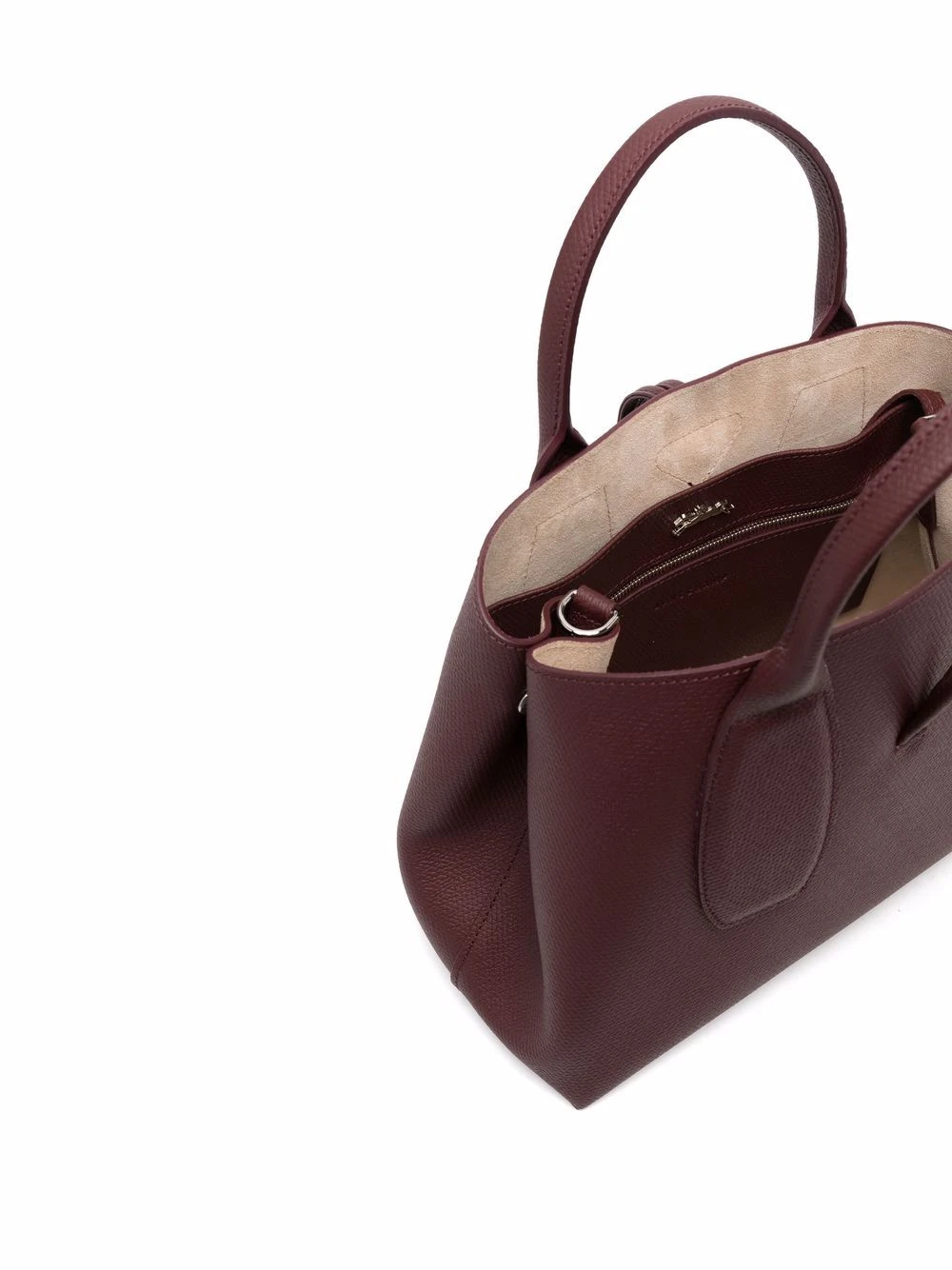Texture grainée, fermeture duffle-coat sur le devant, anses arrondies, bride porté épaule détachable et ajustable, poches intérieures zippées. Matière : cuir.