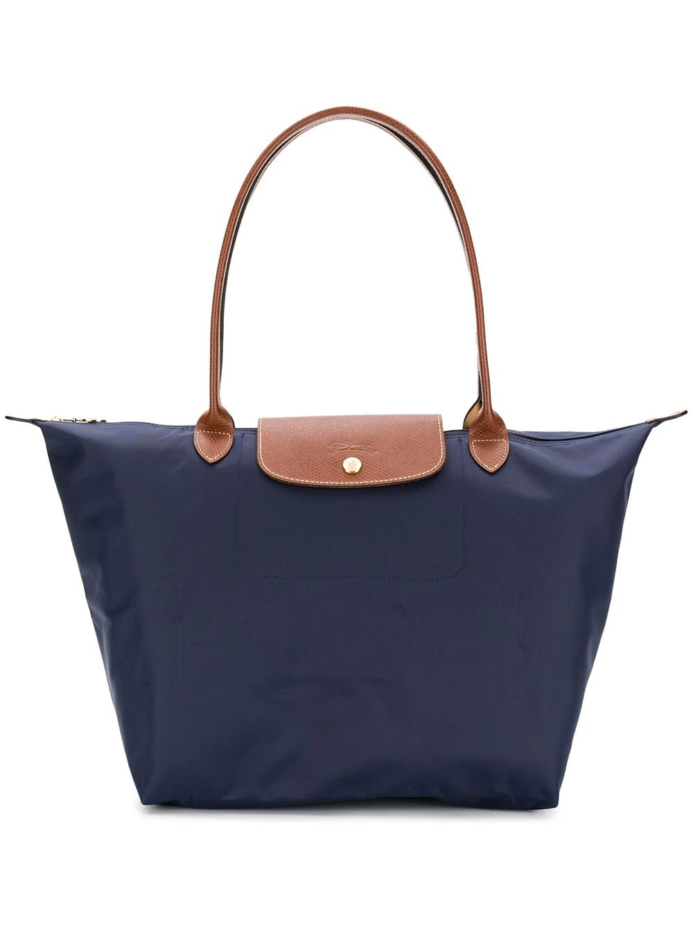 Sac cabas Le Pliage en coton Longchamp avec anses sur le dessus, rabat replié sur le dessus et loquet et poche intérieure zippée.