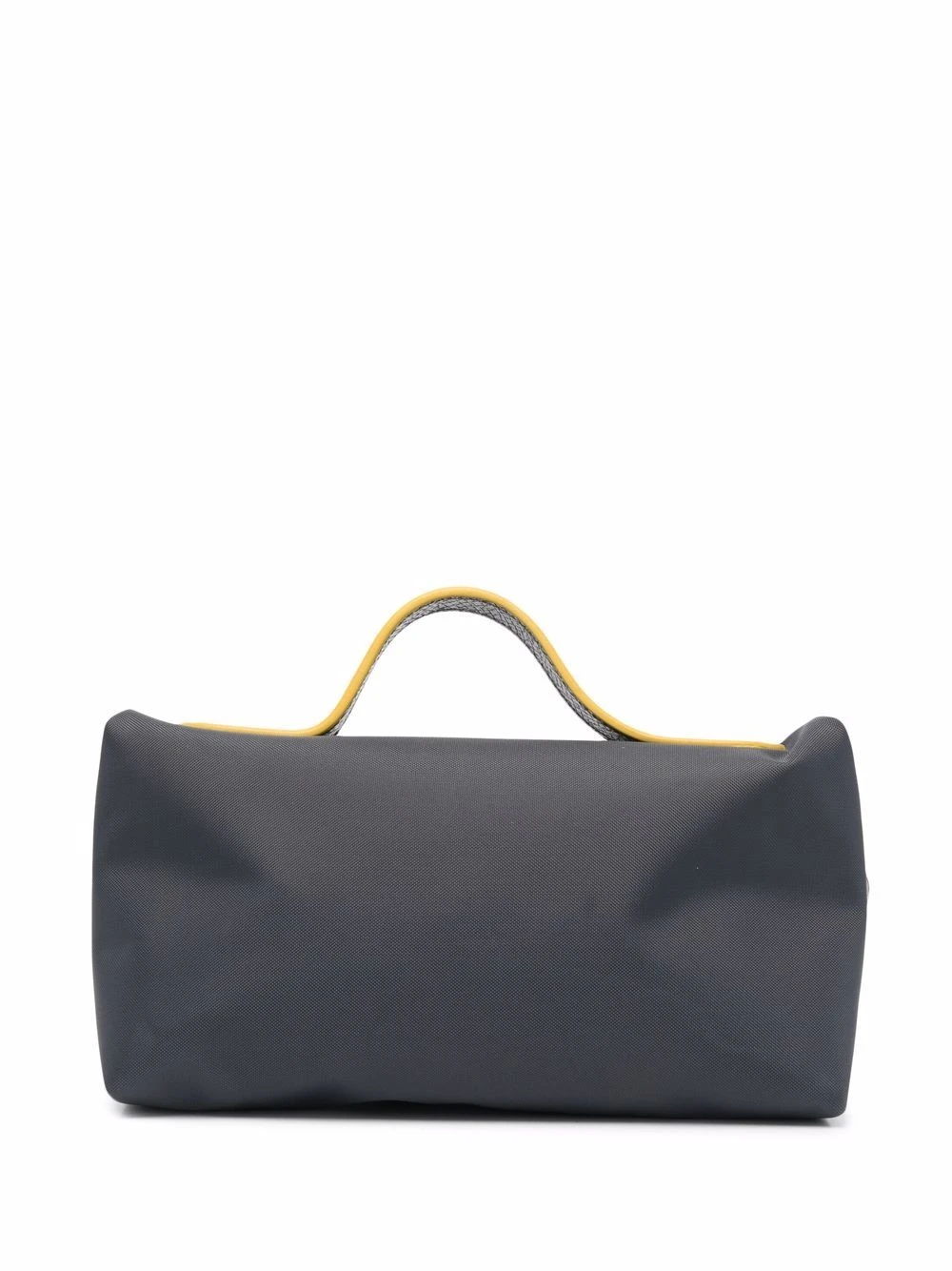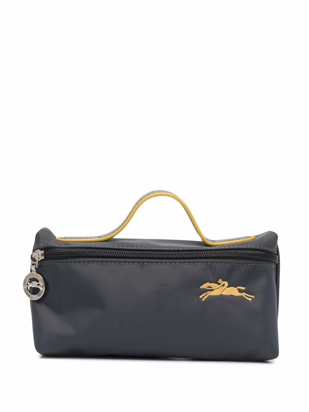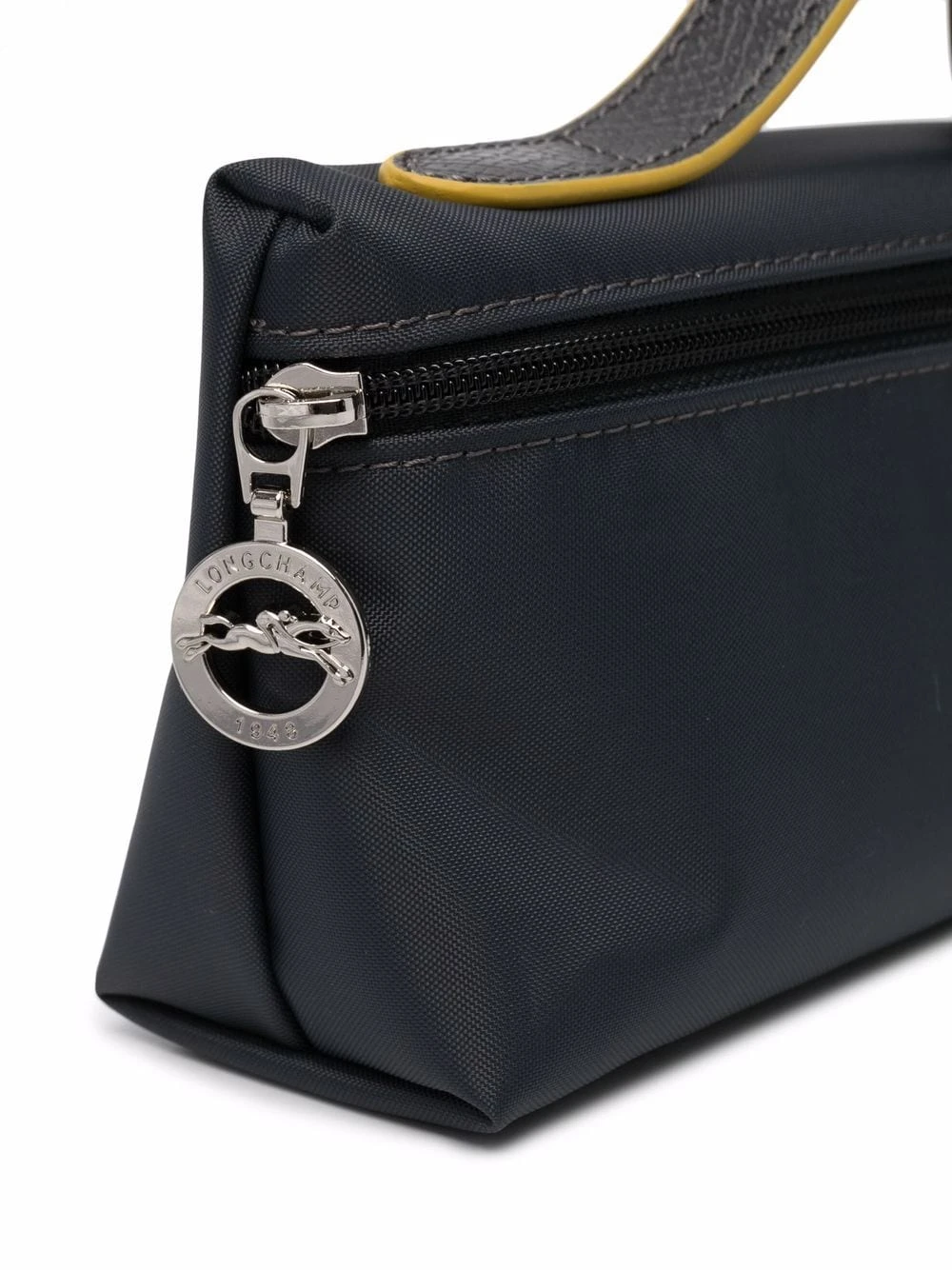 Anse plate sur le dessus, fermeture zippée sur le dessus, logo brodé sur le côté, breloque à logo.