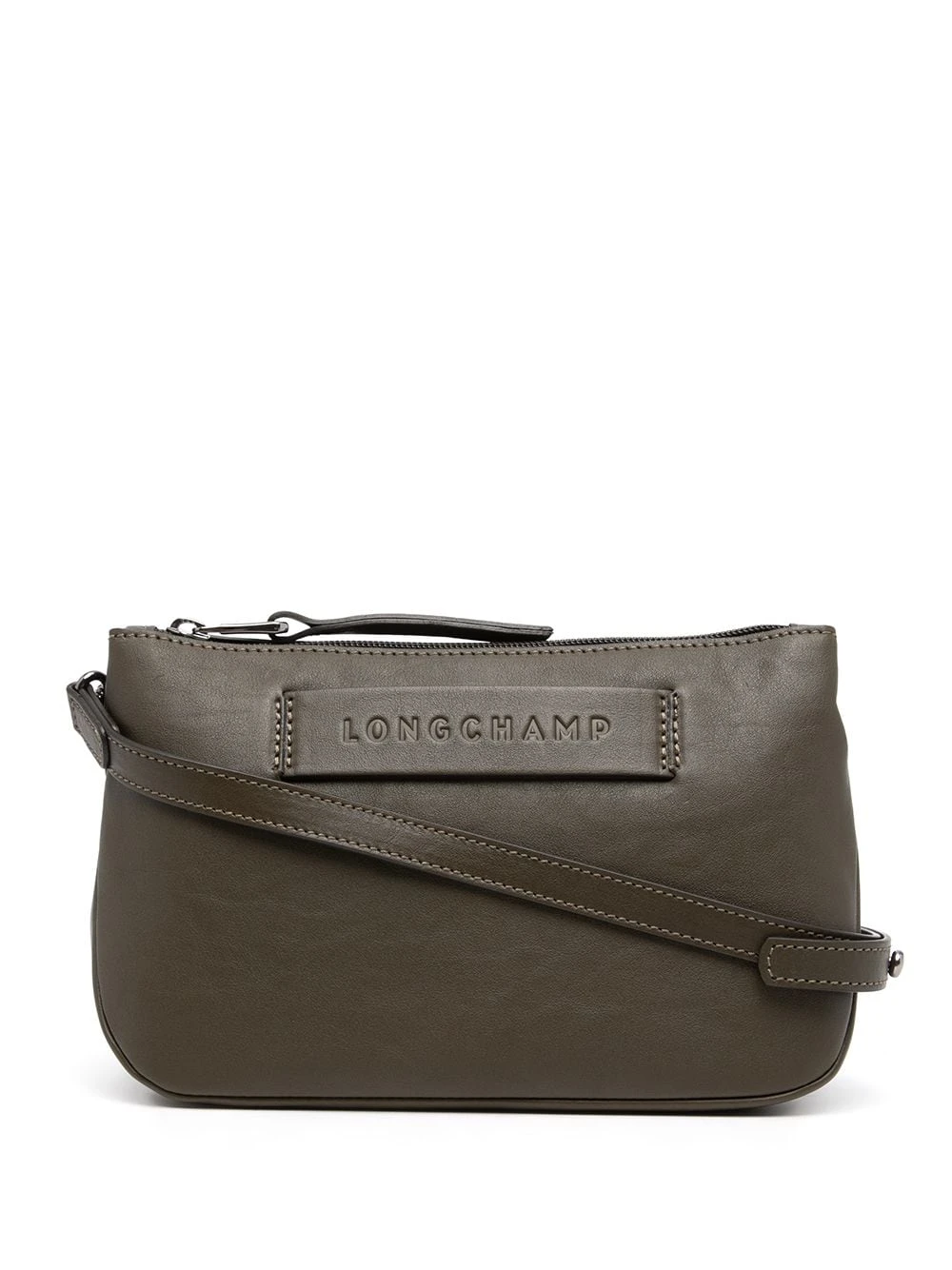 Logo embossé sur le devant, compartiment principal, fermeture zippée sur le dessus, bretelle portée épaule unique. Matière : cuir.