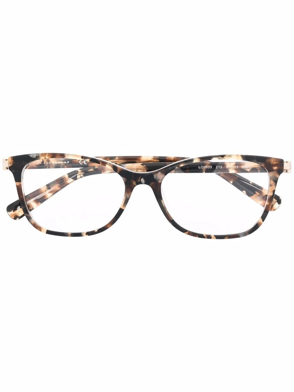 Effet écaille de tortue, verres transparents, monture rectangulaire, pont haut, branches droites, extrémités incurvées. Ces lunettes sont livrées avec un étui de protection.