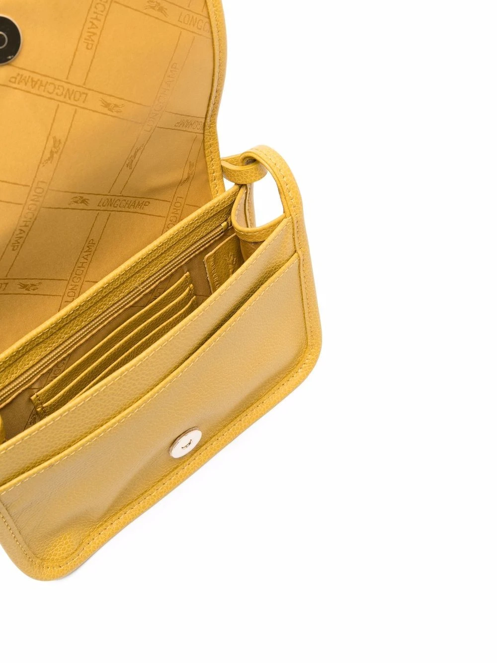 Logo embossé sur le devant, rabat sur le dessus, bride porté épaule ajustable. Couleur : jaune. Matière : cuir.
